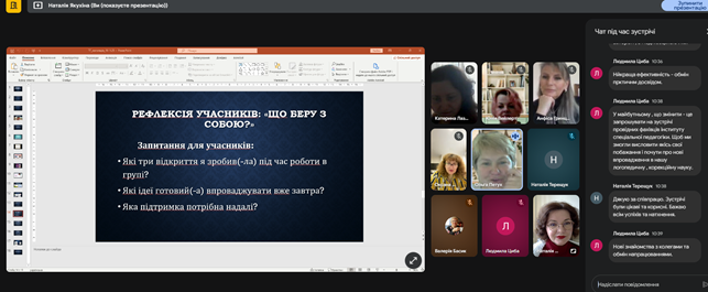 Під час дискусії фахівці визначили дієві інструменти та шляхи впровадження корекційних програм у закладах освіти, акцентувавши на важливості мовленнєвого розвитку для формування безбар’єрного освітнього середовища. Завершила зустріч коротка рефлексія, під час якої учасники узгодили подальші кроки співпраці. Щиро дякуємо всім членам творчої групи за професіоналізм, активність і готовність ділитися досвідом. Нехай здобуті знання стануть надійним підґрунтям для подальшої корекційної роботи. До нових зустрічей у наступному навчальному році!