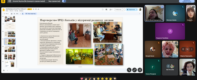 Під час заходу керівники ІРЦ: Тетяна ВАЛУЙКО, директор КУ «Монастирищенський інклюзивно-ресурсний центр» Монастирищенської міської ради Черкаської області та Людмила ЧАЛАБІЄВА, директор КУ «Канівський інклюзивно-ресурсний центр» Канівської міської ради Черкаської області — поділилися цінним практичним досвідом. Вони розповіли про ефективні підходи, які впроваджують у своїх громадах, поділилися прикладами взаємодії з батьками та фахівцями, а також окреслили сучасні виклики й можливості у роботі з дітьми з особливими освітніми потребами.