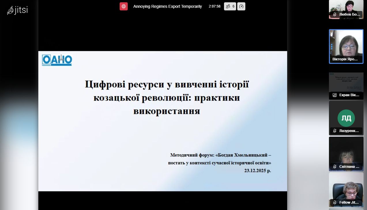 23 грудня 2025 року на базі Черкаського обласного інституту післядипломної освіти педагогічних працівників у дистанційному форматі відбувся Всеукраїнський методичний форум «Богдан Хмельницький – постать у контексті сучасної історичної освіти».