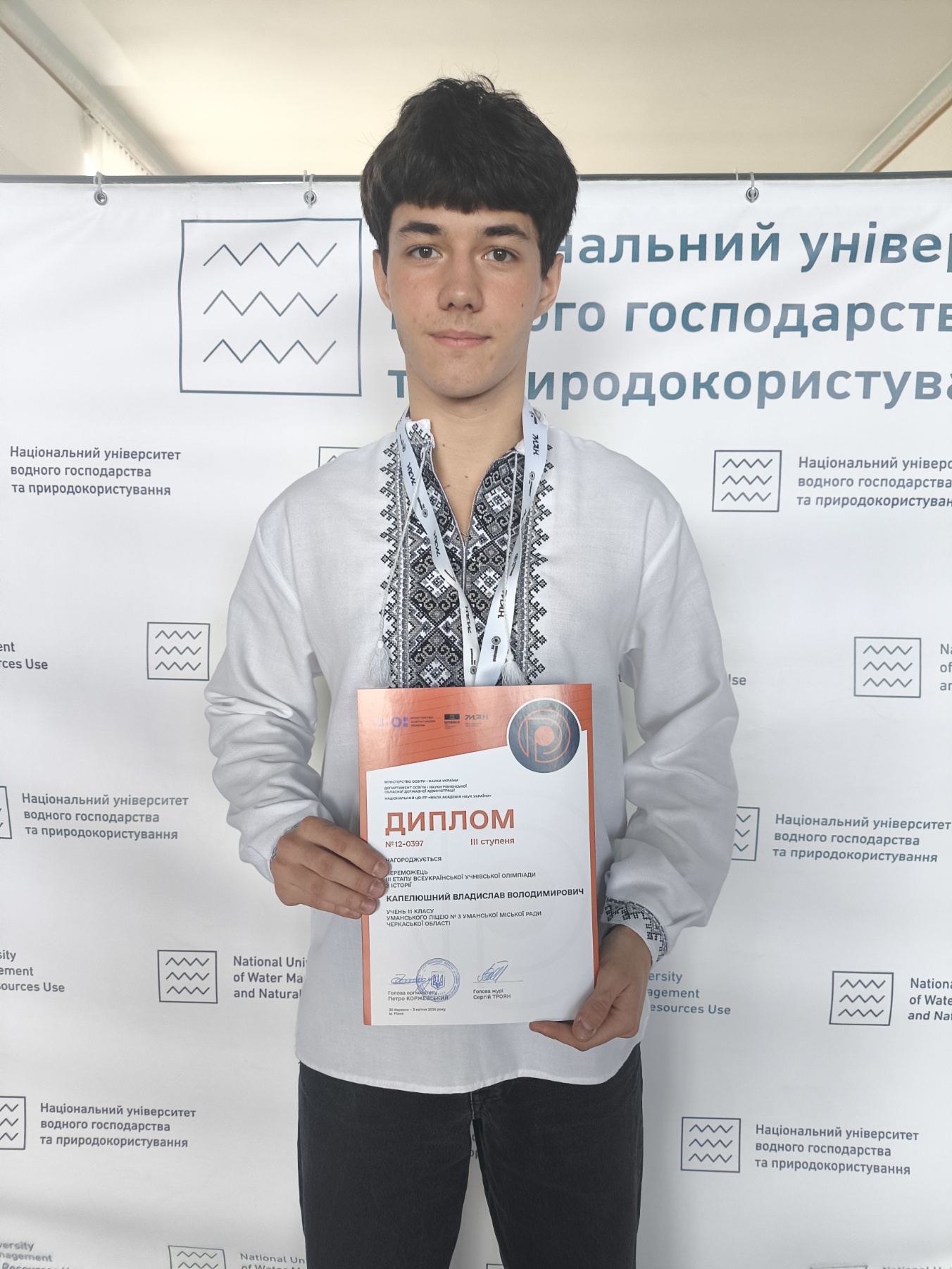1. Капелюшний Владислав , учень 11 класу Уманської гімназії № 3 Уманської міської ради Черкаської області.